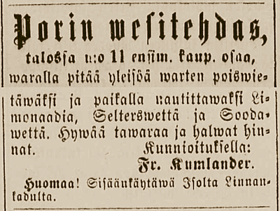- Mineralvatten Fabrik, Fr. Kumlander