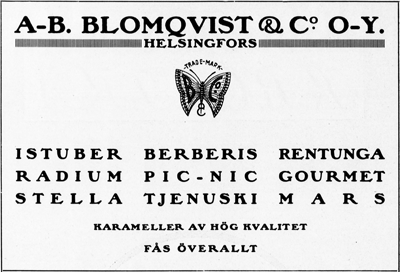 Oy Blomqvist & Co. Oy: Veckans Grönika 1920 no 50, 1921 no 17, Kauppalehti 1922 no 214 B, 1922 no 279.