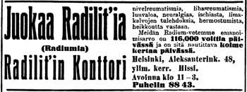 Radiwoll liinaa sekä radiosclerin tabletteja markkinoitiin toiseen maailmansotaan saakka.