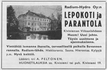 Vuonna 1936 Kiviniemeen perustettiin uusi yhtiö Radium-Hydro Oy jatkamaan parantolan ja radiumvesitehtailun toimintaa. Uuden yhtiön perustaja ja omistaja professori liikemies Pekka Juho Valkeapää vuokrasi kiinteistön SVUL:ltä omistamansa helsinkiläisen Oy Valkeapää Ltd (22.384) yhtiön nimiin. Samalla vesitehtailu aloitettiin uudestaan. Ilmoituksissa parantolan uusittu nimi oli tästä eteenpäin radiumvesiparantola ja täysihoitola Radium-Hyrdo Oy. Jatkossa pullotetun veden suurimpia ostajia oli OTK, jonka kautta vettä sai lähes kaikkialta suomesta.