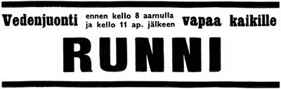 Oy Radium-Vesi Ab: Suom kaupparek 1936 no 2, 1938 no 13, 1938 no 23, 1938 no 24, Ilta Sanomat 1936 no 137, Pirkkalan Uutiset 1936 no 26, Suomen Sosiaalidemokraatti 1936 no 173, Vaasa 1939 no 121, Keräily Harvinaisuus 1997 no 5, Anne Haapalainen: Nokian Uutiset 26.09.2018, 01.10.2018, etiketti: Ulf Lundström.
