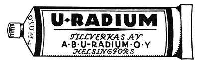 Ab U-radium Oy: Suom kaupparek 1923 no 9, 1932 no 6, Suom Tavaraleimarek 1923 no 9, Heinolan Sanomat 1923 no 75.