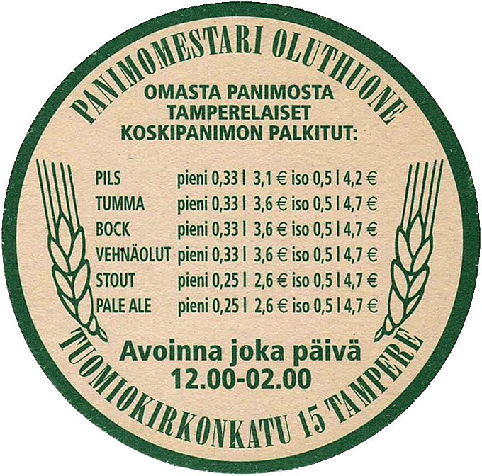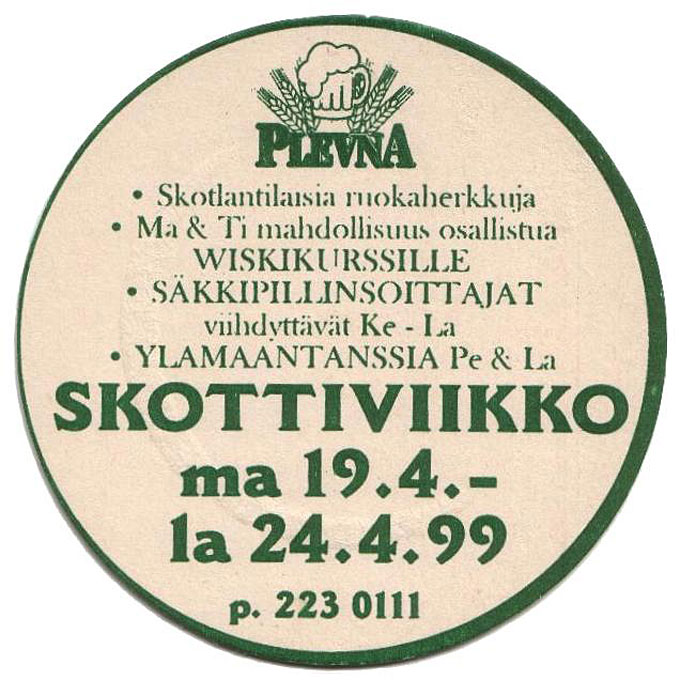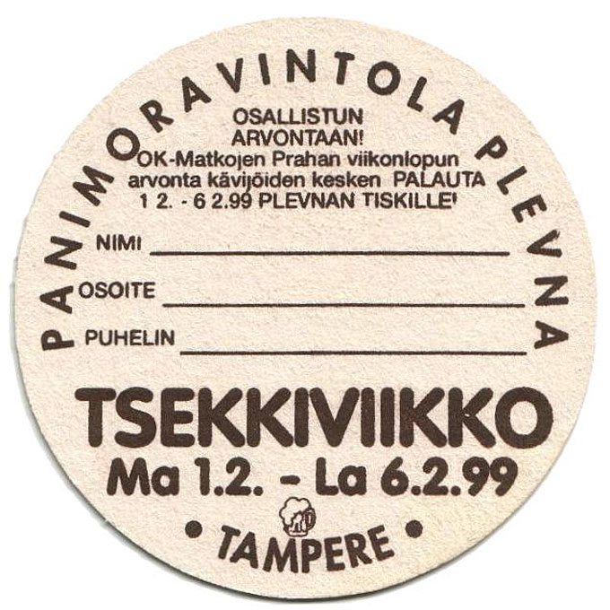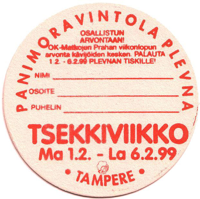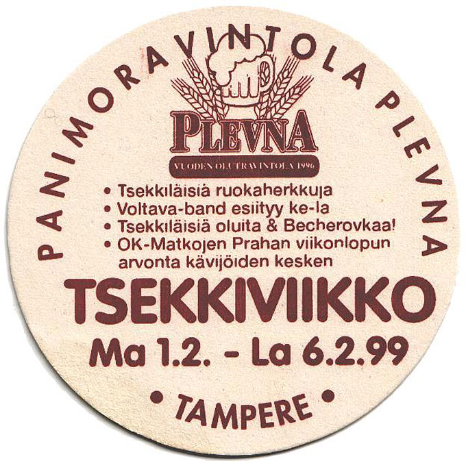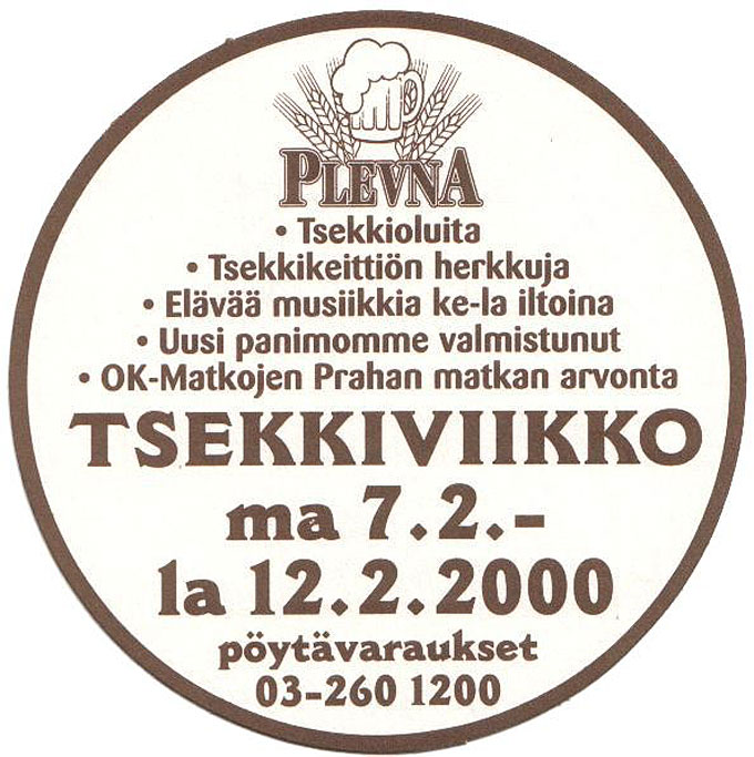 Panimomestari Oluthuone ja Tillikka alustoissa Plevnan oluet mainittu ja/tai logo