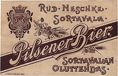 Muuta: Etiketti Rud. Neschke Pilsener Bier on painettu viimeistään vuonna 1899, sillä alakulmassa on painettu painotalon merkintä Lit. Anst. i Åbo Aug. Törn eli Litografiska Anstalten i Åbo Aug. Törn., jonka toiminta loppui silloin.